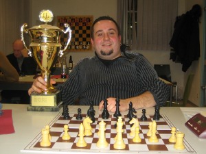 21.12.2010 Carsten Stein hat das traditionelle Weihnachts-Blitzturnier des Schachklubs Wernau gewonnen. Stein gewann alle sieben Partien, auch die entscheidende gegen den Titelverteidiger Hagen Stegmüller. Belohnt wurde der Turniersieger mit dem goldenen Wanderpokal, den er nun für ein Jahr mit nach Hause nehmen darf. Zweiter wurde Hagen Stegmüller, der die anderen sechs Partien allesamt für sich entschied. Mit zwei Punkten Abstand teilten sich Peter Brenner und Oliver Boceck den dritten Platz.