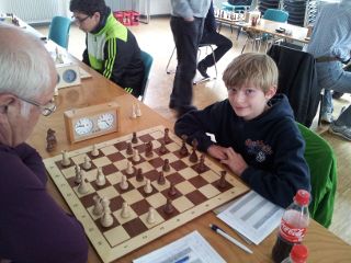 Das galt vor allem für die jungen Spieler. Fahri Yildiz (Deutsche Wertungs-Ziffer 1000) spielte couragiert auf und schaffte es, einem nominell deutlich stärkeren Gegner (DWZ 1400) ein Remis abzutrotzen. Dasselbe Kunststück gelang Joshua Uhl, der schon seit zwei Jahren ein zuverlässiger Punktelieferant ist. Ein weiteres Unentschieden holte Peter Trautmann, während Thomas Uhl kampflos gewann.
